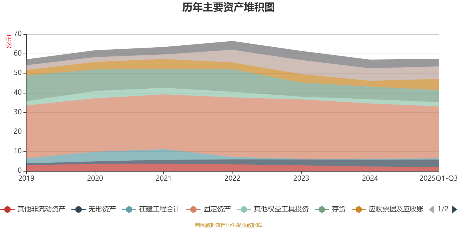 资产重大变化方面,截至2025年三季度末,公司应收票据及应收账款较上年末增加93.67%,占公司总资产比重上升4.73个百分点;固定资产较上年末减少6.03%,占公司总资产比重下降3.36个百分点;应收款项融资较上年末减少36.25%,占公司总资产比重下降1.08个百分点;无形资产较上年末增加10.69%,占公司总资产比重上升0.6个百分点。