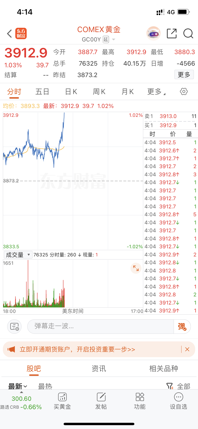 $中金黄金(SH600489)$ 不停创新高!节后4000看来是大概率事件!