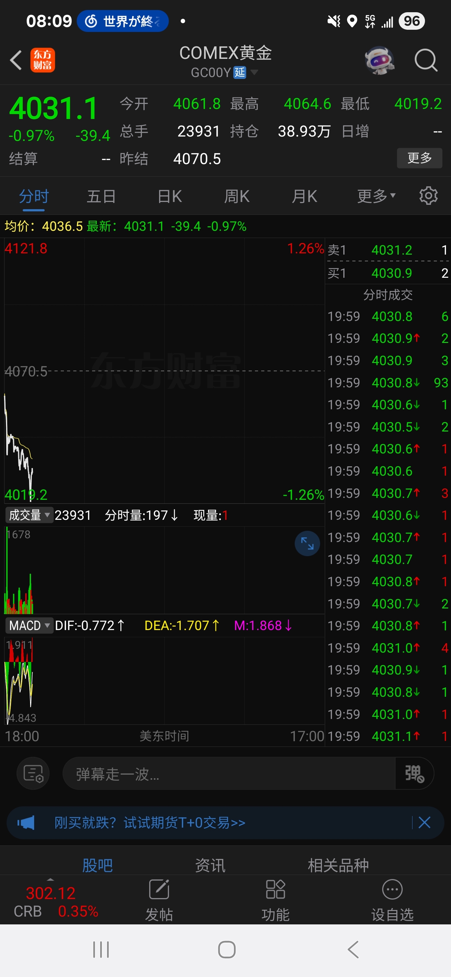 $中金黄金(SH600489)$ 黄金疯狂跳水了,高开跑没毛病