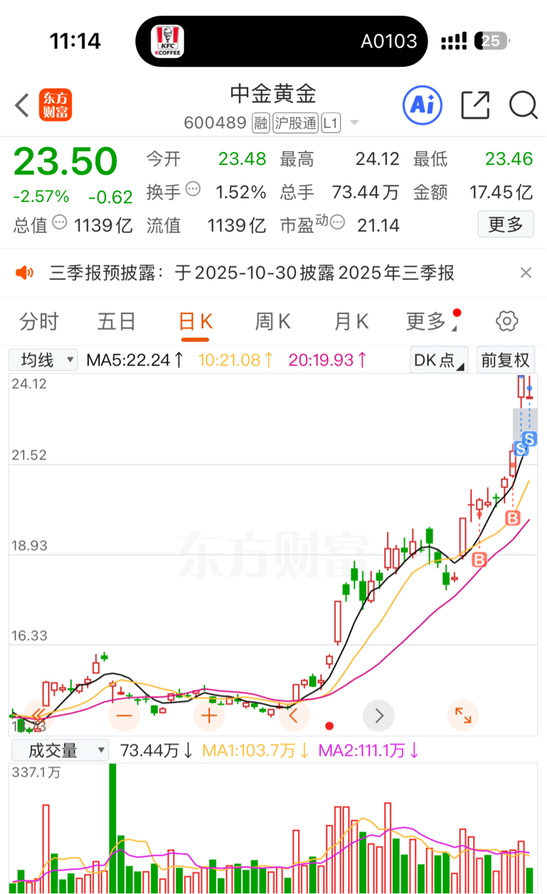 $中金黄金(SH600489)$ 美妙短线,再回调再做一个。