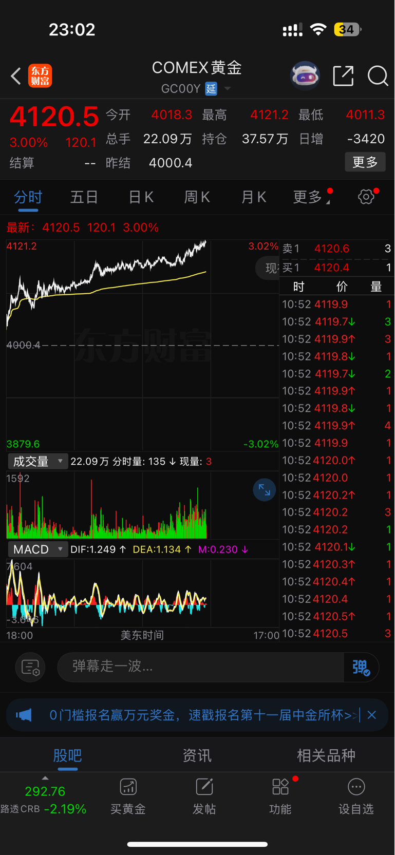 $中金黄金(SH600489)$ 黄金期货彻底疯狂!!! 明天直接大红开