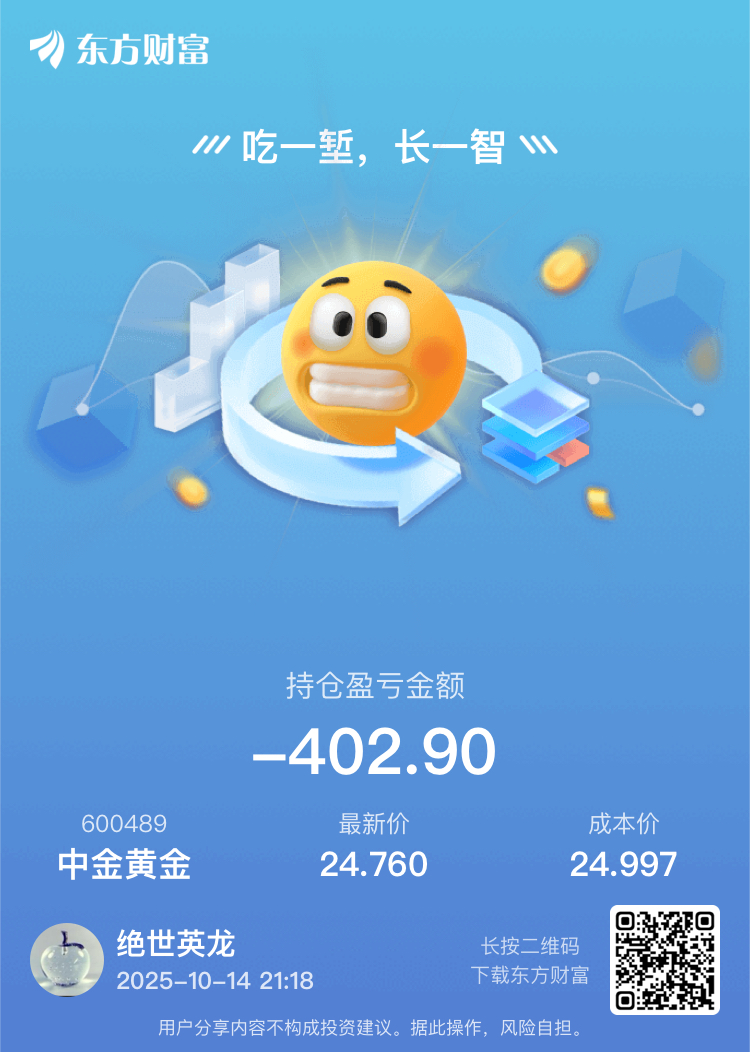 $中金黄金(SH600489)$ 今天股市主力资金流出1000多亿,黄金股也大跌,难道牛市结束了?老司机肯定懂,但不会说!对于菜鸟的我,只能发发牢骚了,哎……