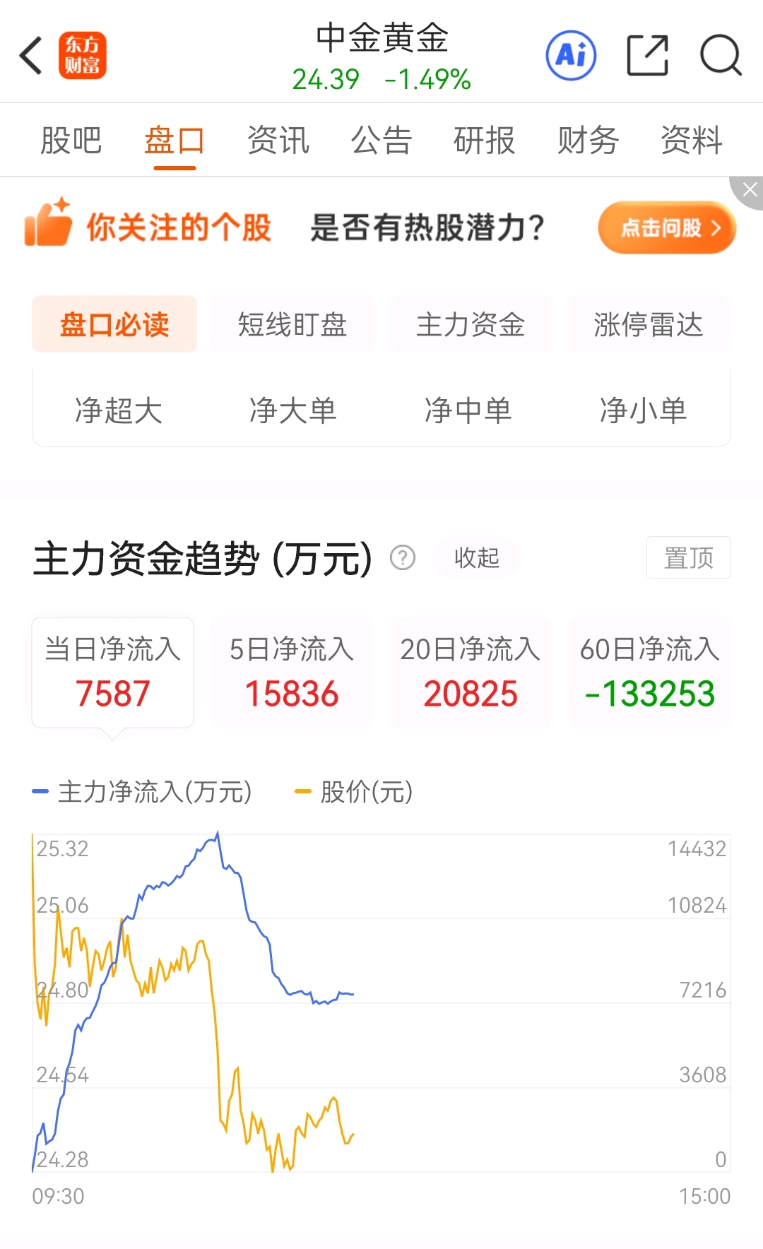 $中金黄金(SH600489)$ 不能这样吧,肯定有狗打压股价,外面这么好。