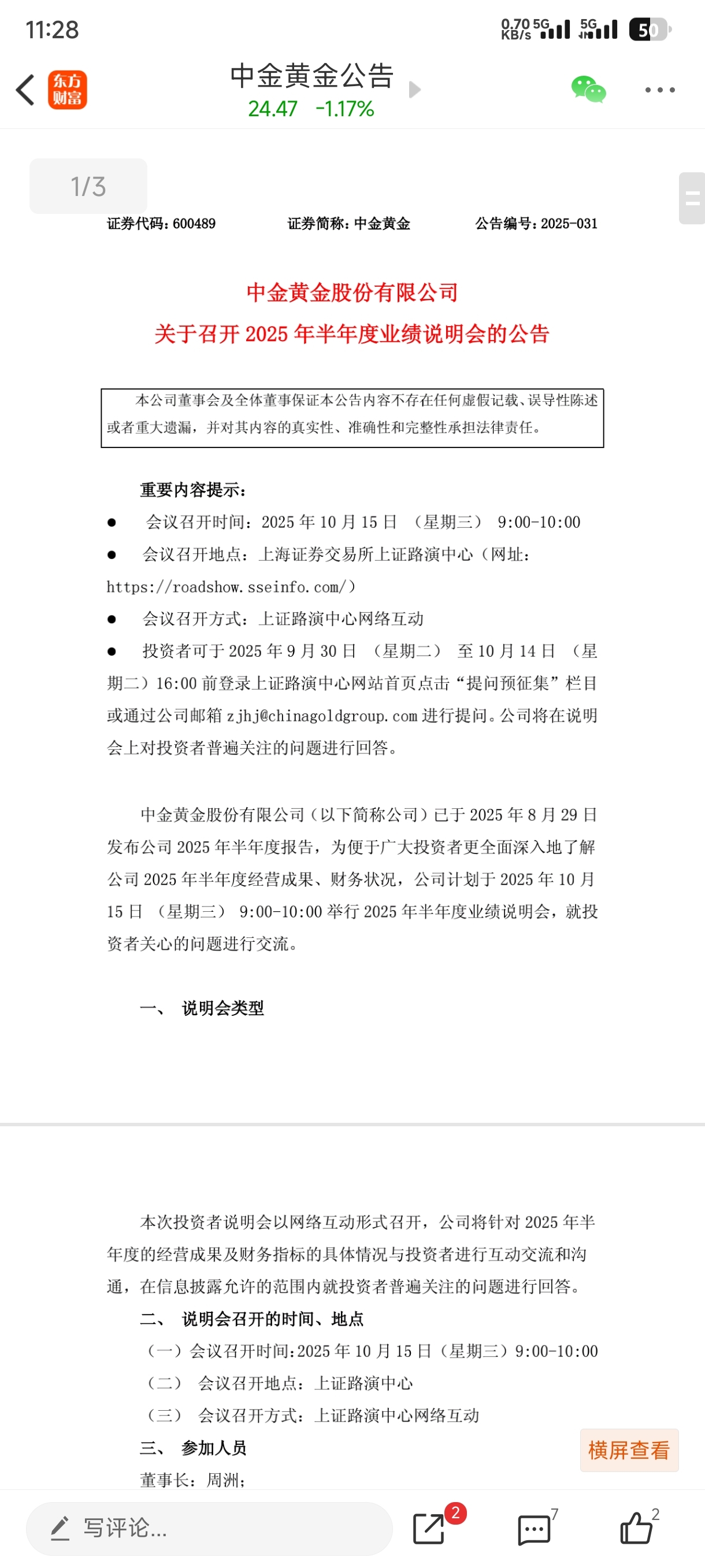 $中金黄金(SH600489)$ 是不是这个公告消息不太好