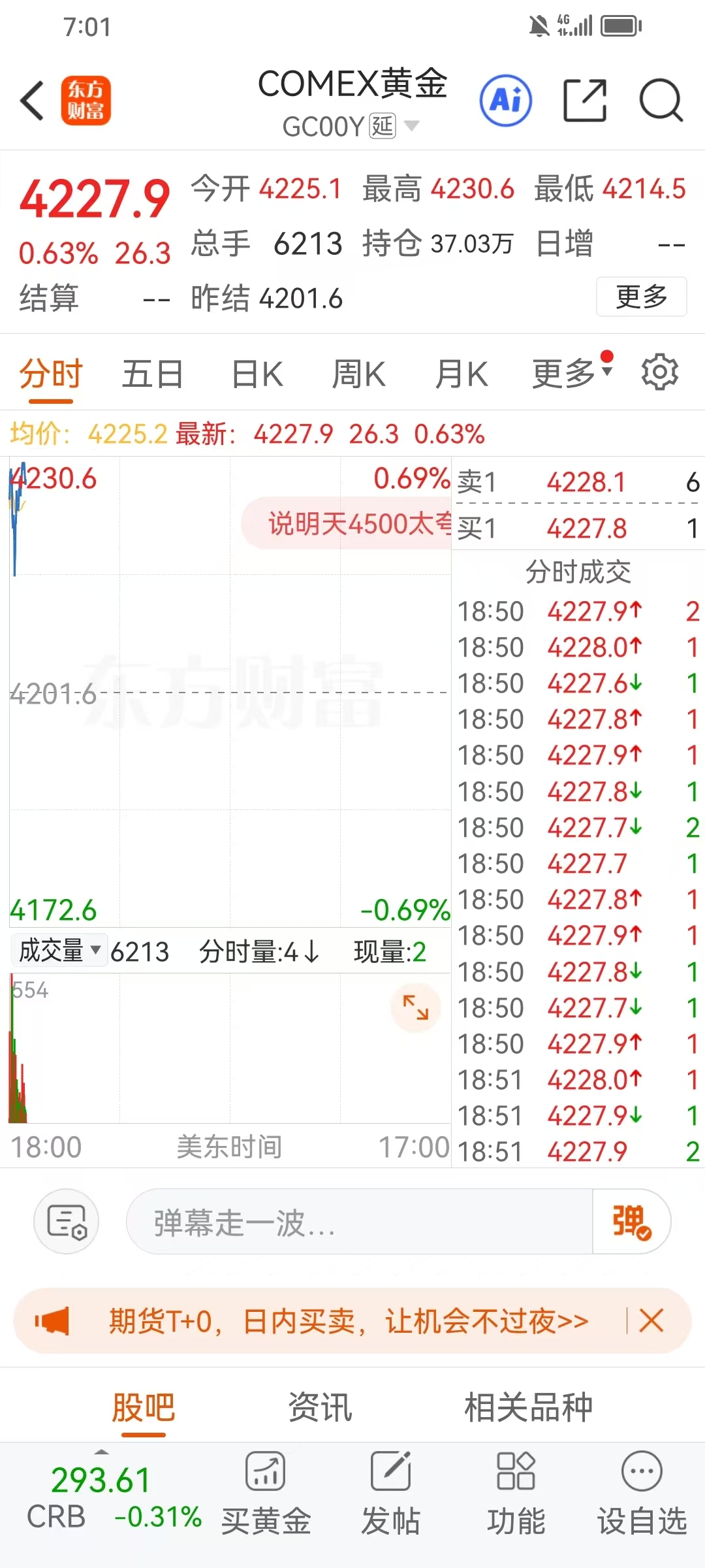 都过4200了,如果今天中金黄金敢跌,就卖掉其他股,加仓中金黄金。