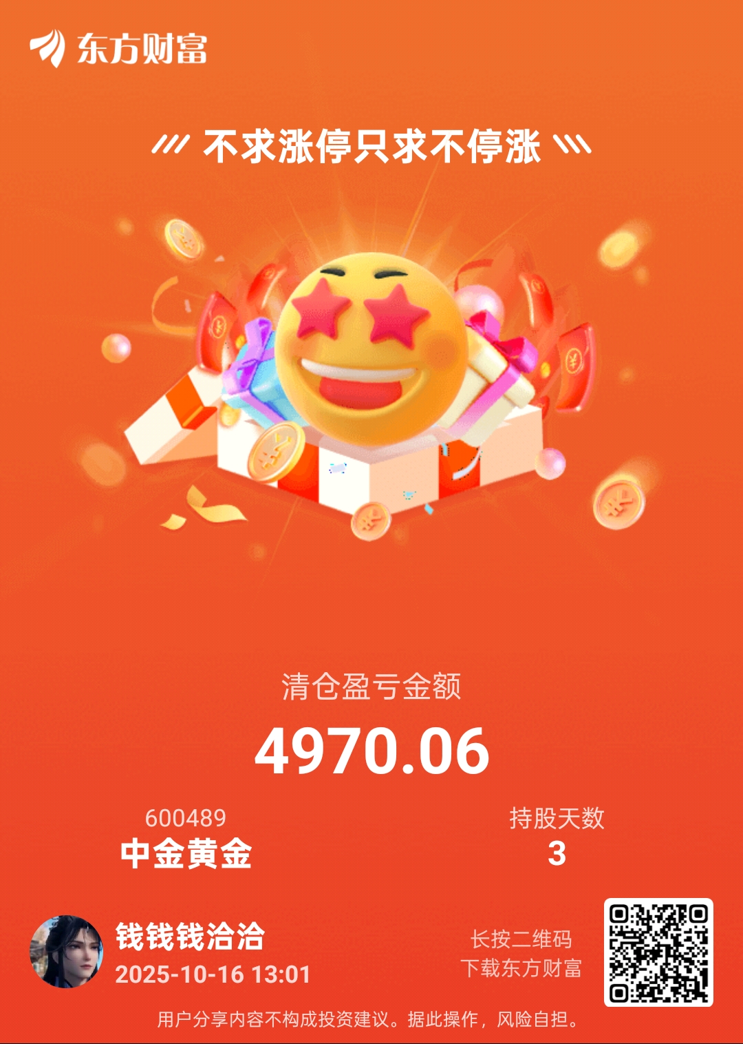 $中金黄金(SH600489)$ 高开我就跑,低开我就接回来