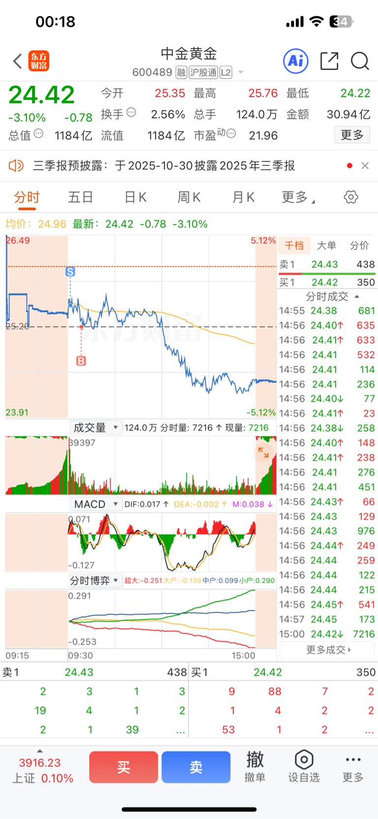 $中金黄金(SH600489)$ 还是接早了,贵金属只要跌,无论期货怎么涨都没用。明天只要高开继续和今天一样砸出筹码。