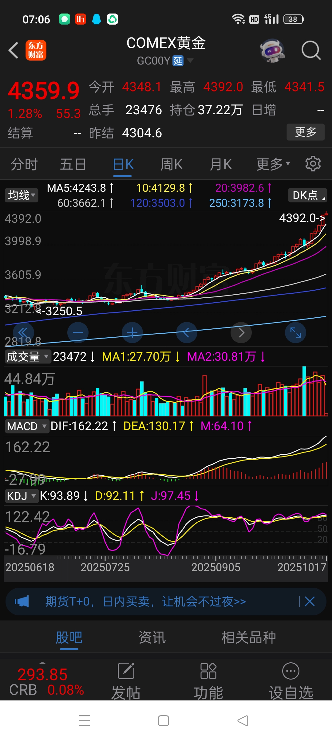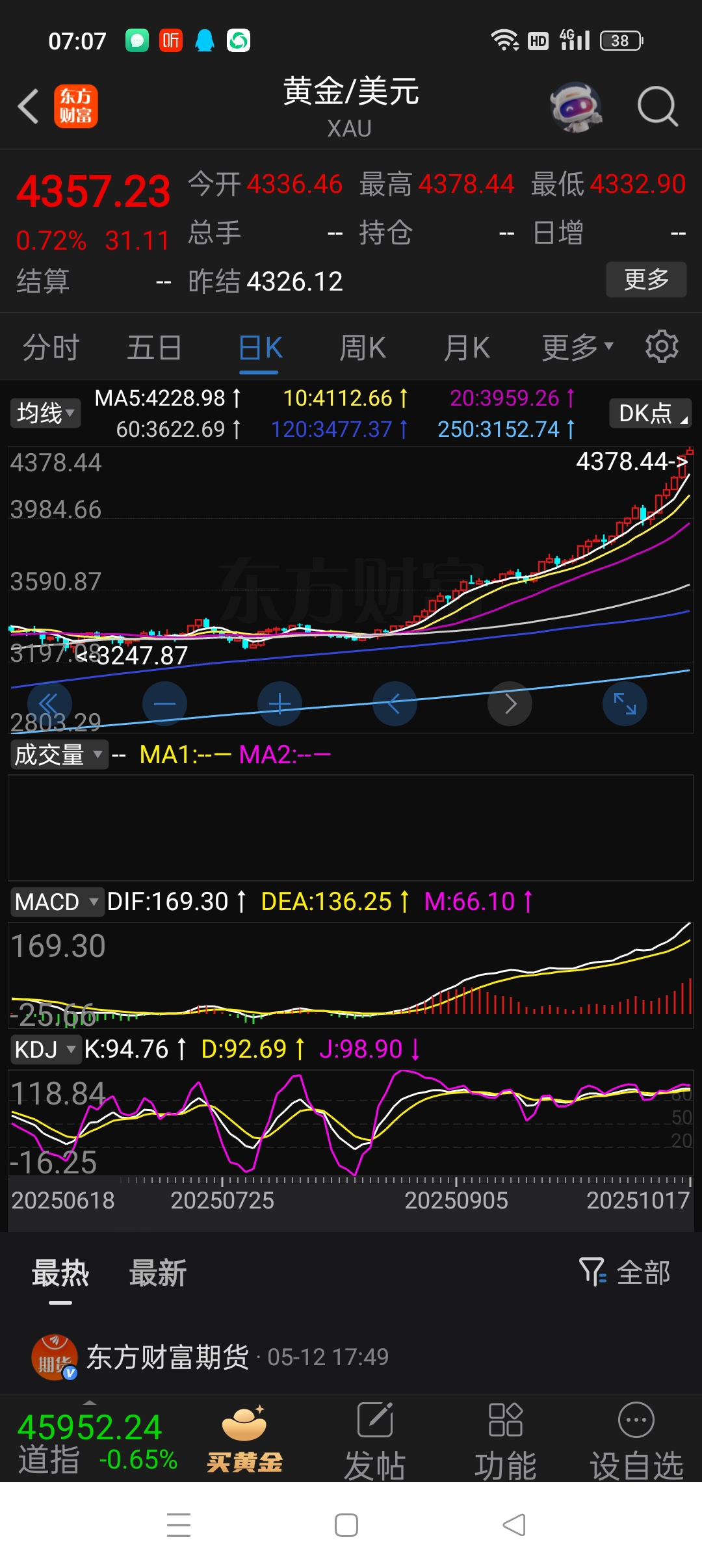 《谨防黄金短期下杀》近来黄金攻势如潮,美黄金逼近4400,国内已近1000,短期