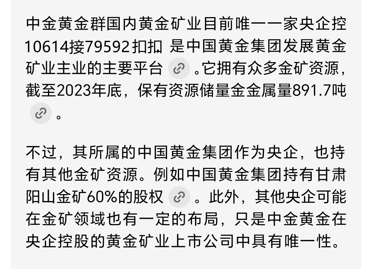 中金黄金是目前国内黄金矿业唯一一家央企(中国黄金集团)控股的上市公司。有极大的整体上市预期,上100元是迟早的事。主要看中间黄金下方。。
