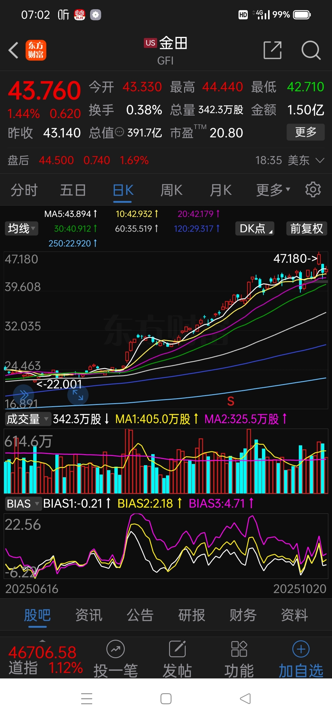 $中金黄金(SH600489)$ 奇怪美国黄金大升,但美股黄金涨不动,是否预期贲金见短期顶,美国黄股也涨不动。