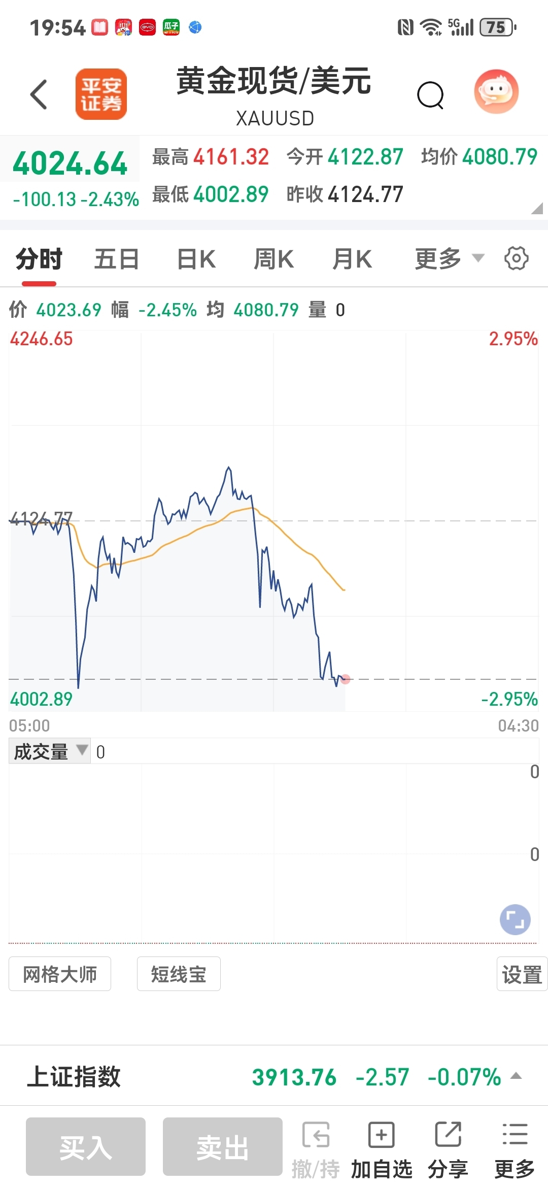 $中金黄金(SH600489)$ 今晚黄金期货大跌,明天危险了