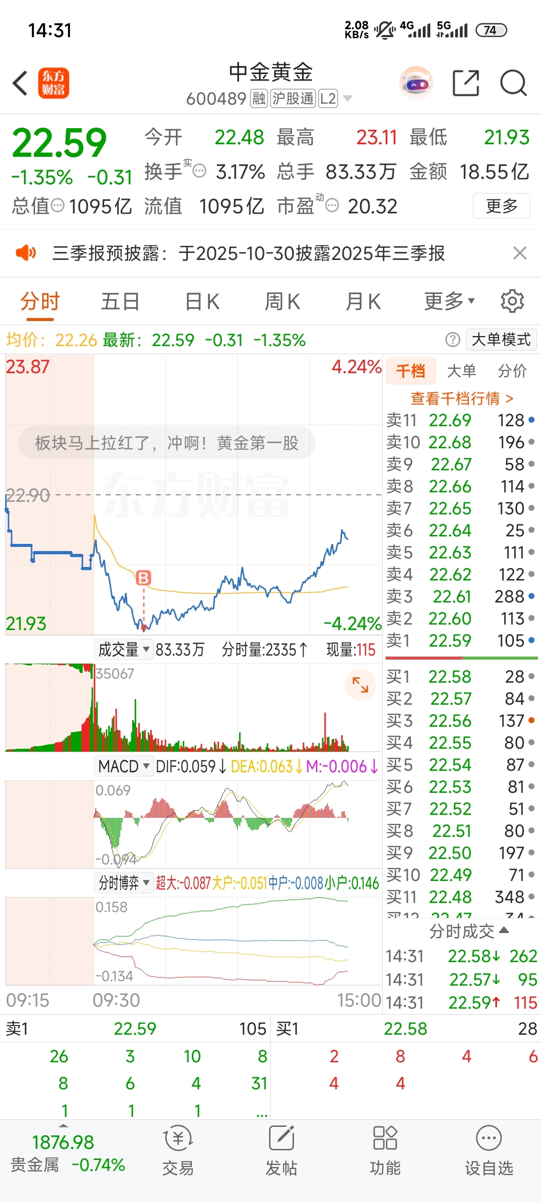 $中金黄金(SH600489)$ 这个买点如何?