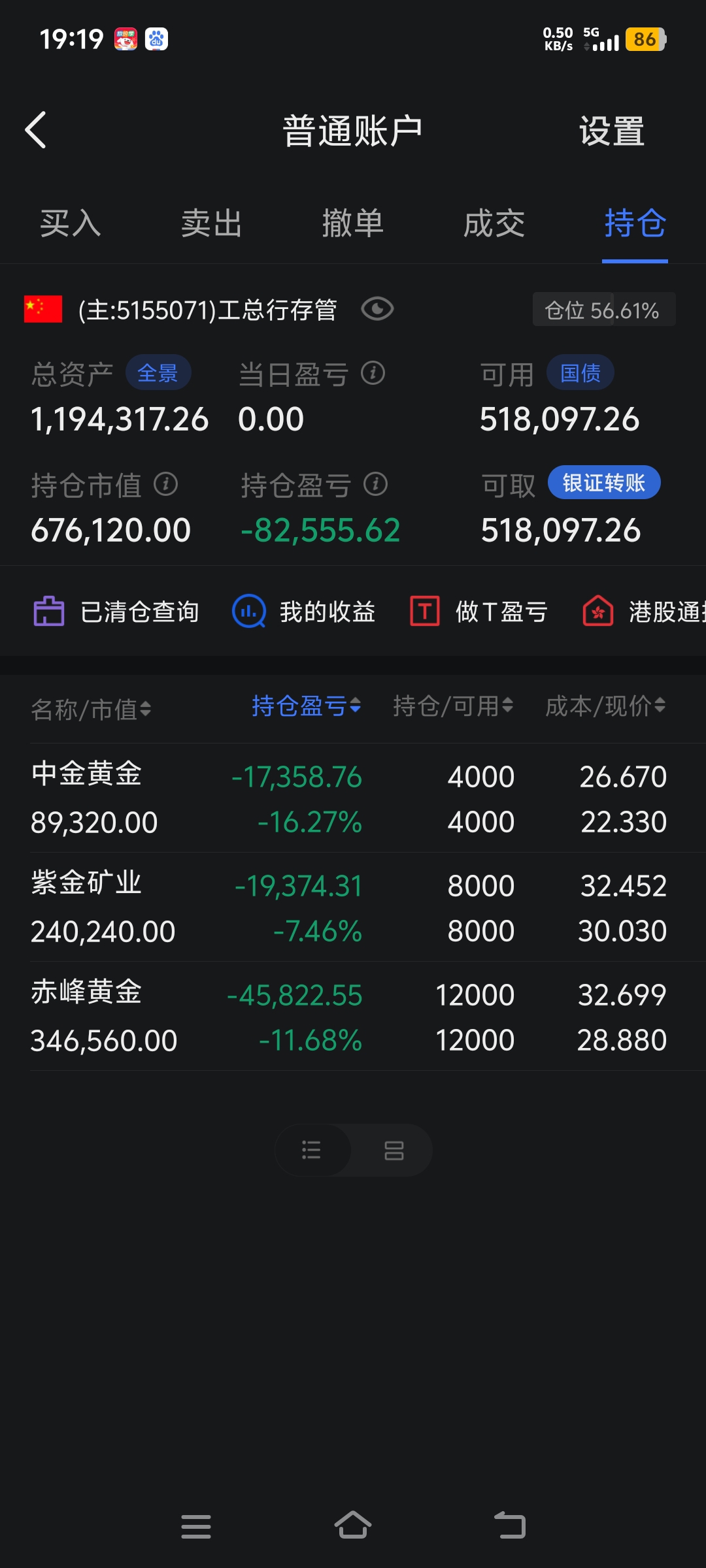 $中金黄金(SH600489)$ 我当时同时买的三只票,紫金,赤峰,中金,到目前中金是最弱的一个