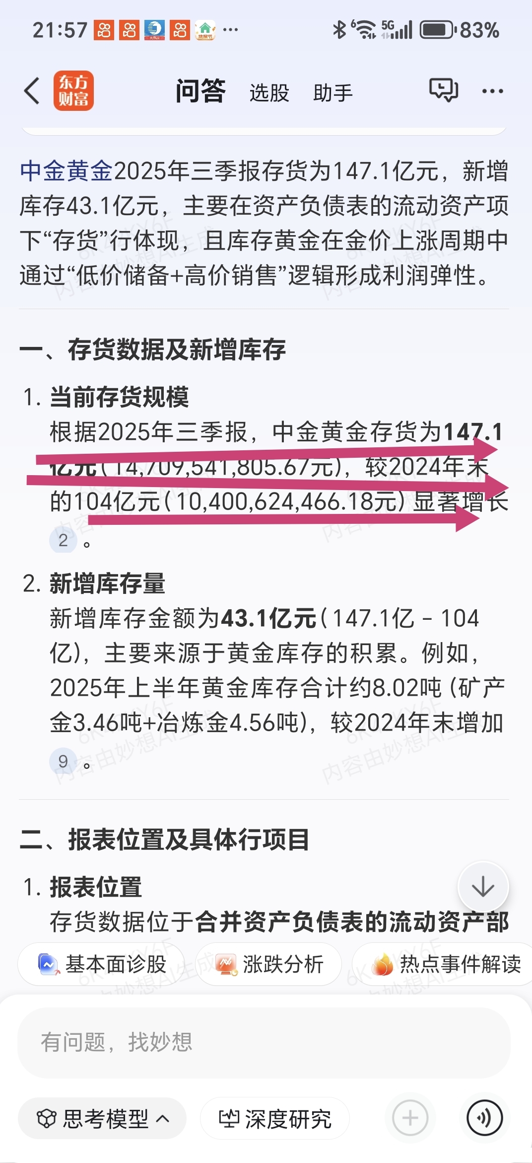 $中金黄金(SH600489)$ 存货增加了41纯利润呀