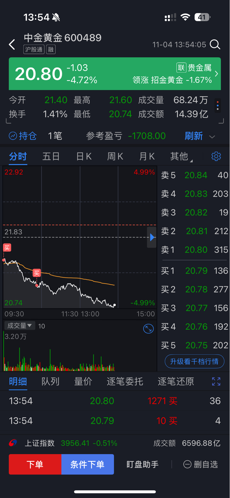 $中金黄金(SH600489)$ 硬扛中,连续掉三天了,一直补