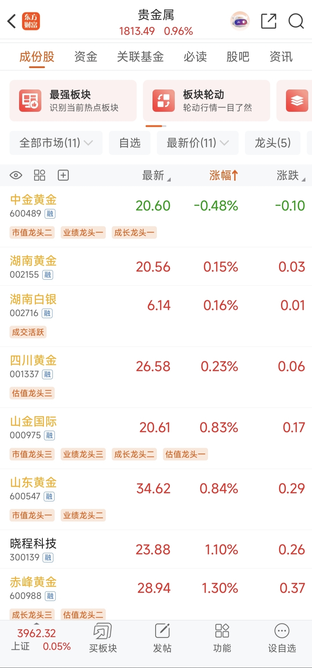 $中金黄金(SH600489)$ 我笑了,就它一个是绿的