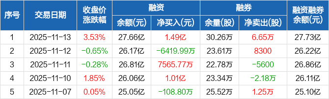 中金黄金:融资净买入1.49亿元,两市排名第17(11-13)