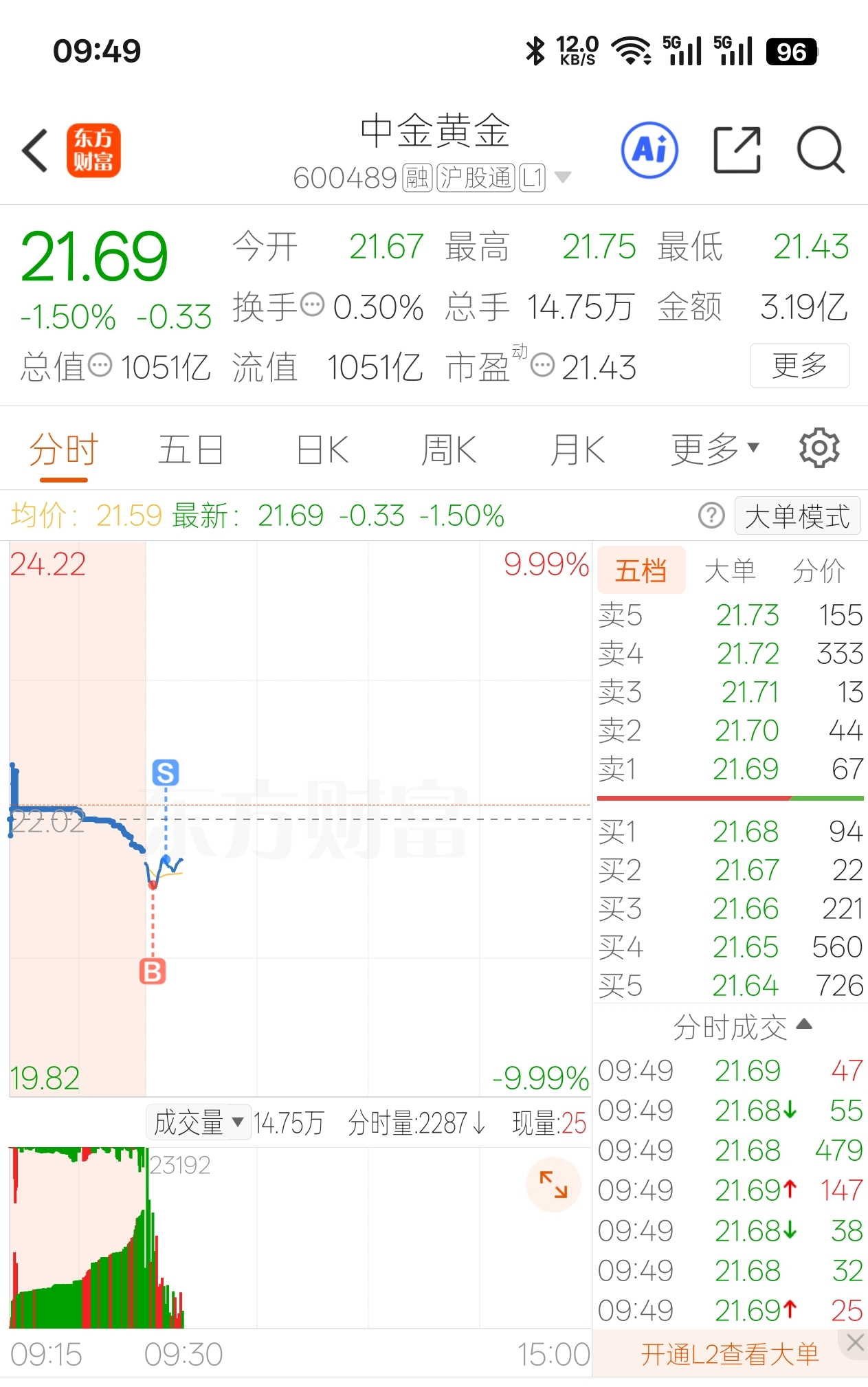 $中金黄金(SH600489)$ 小t一手,再等机会
