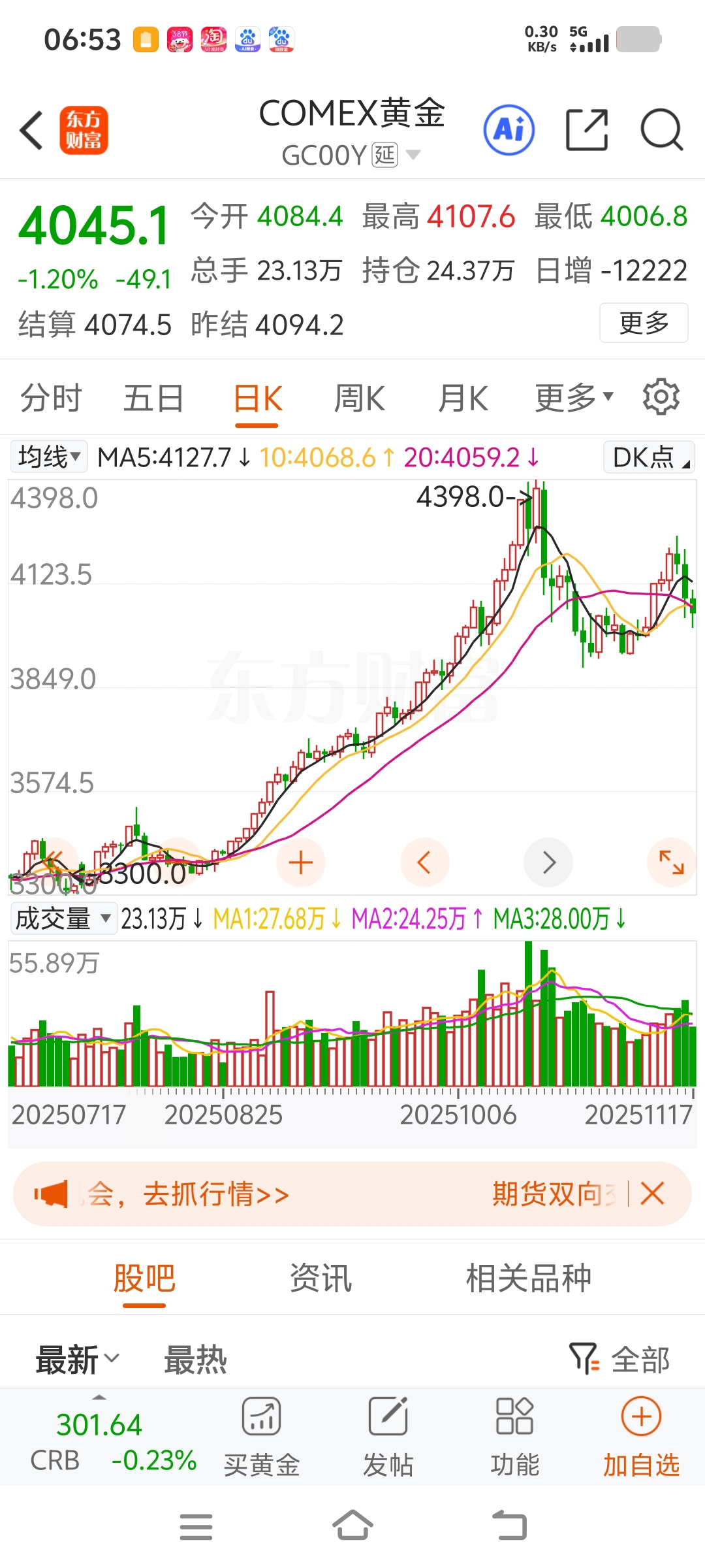 黄金昨夜大跌,美国人造黄金出来,今天又要亏麻,今早开盘就跳下车避免损失惨重