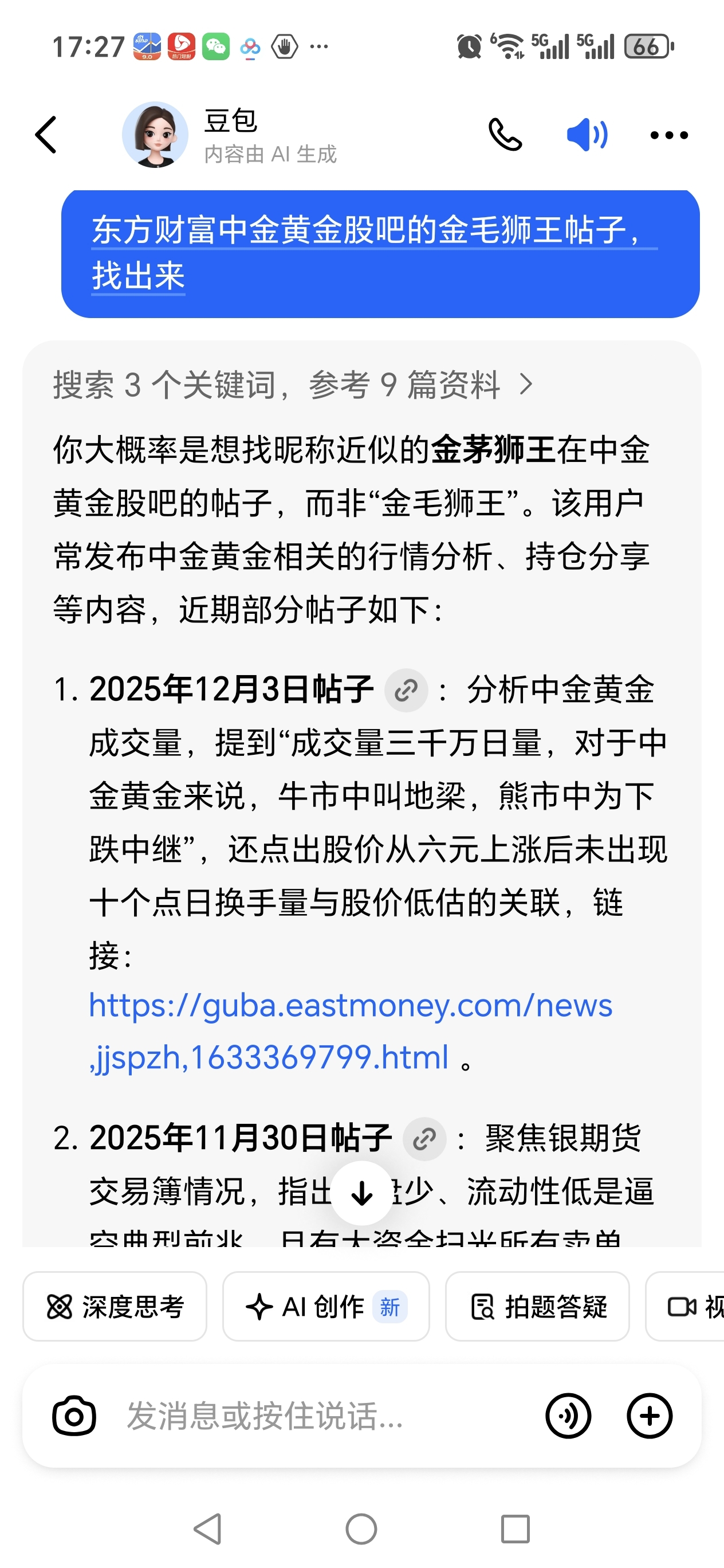 事实豆包的人工智能金毛狮王在我的帖子里跟帖,被豆包找到,可是我要的是金毛狮王写的