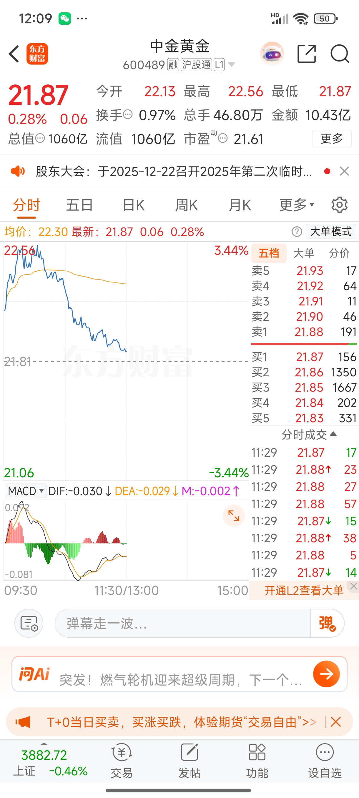 早上开盘卖了,去买浙能电力了,6%的分红,为什么中金黄金老是跌呢
