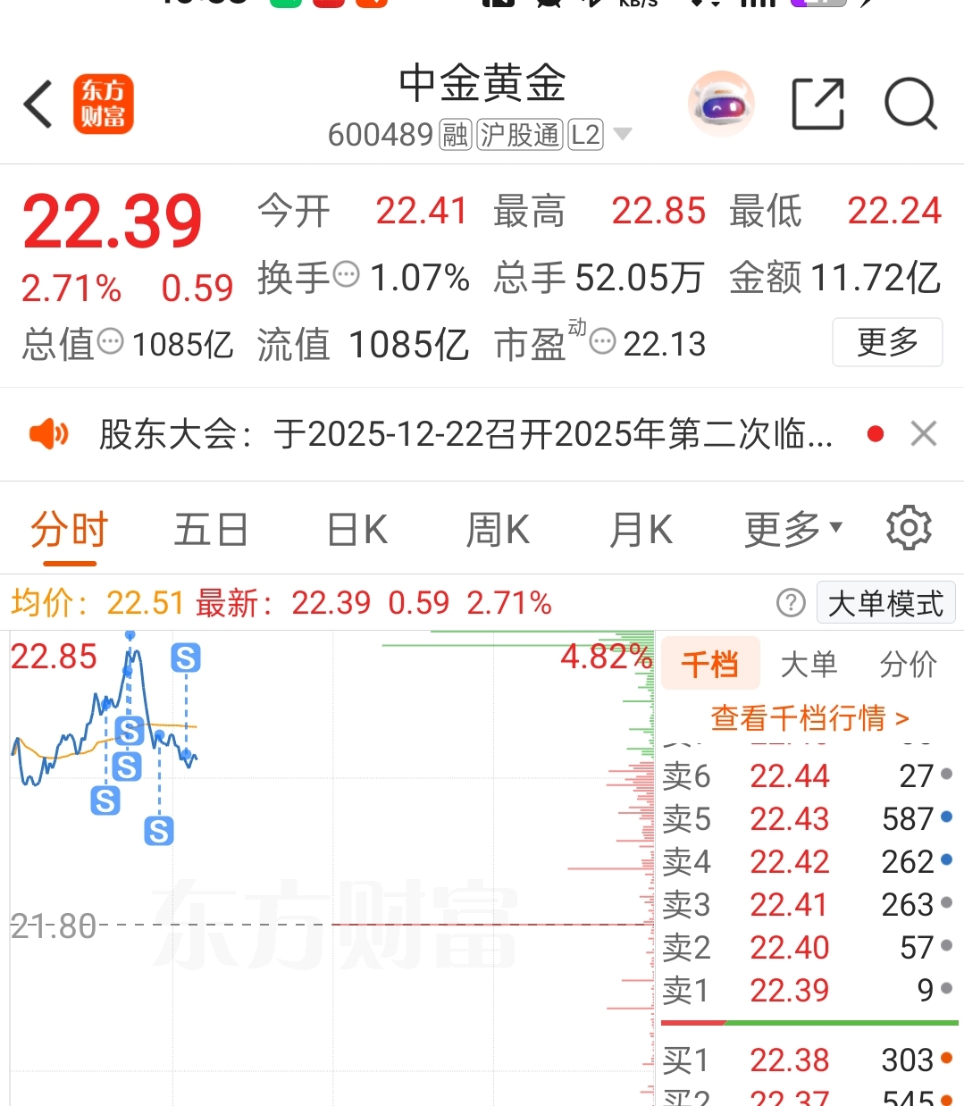 $中金黄金(SH600489)$ 中金真不能格局,最后一笔挂23了,主力来吃掉清仓走人