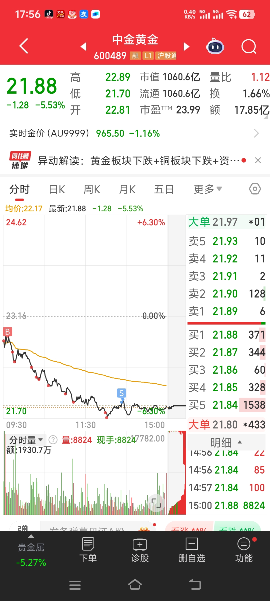 $中金黄金(SH600489)$ 无语了