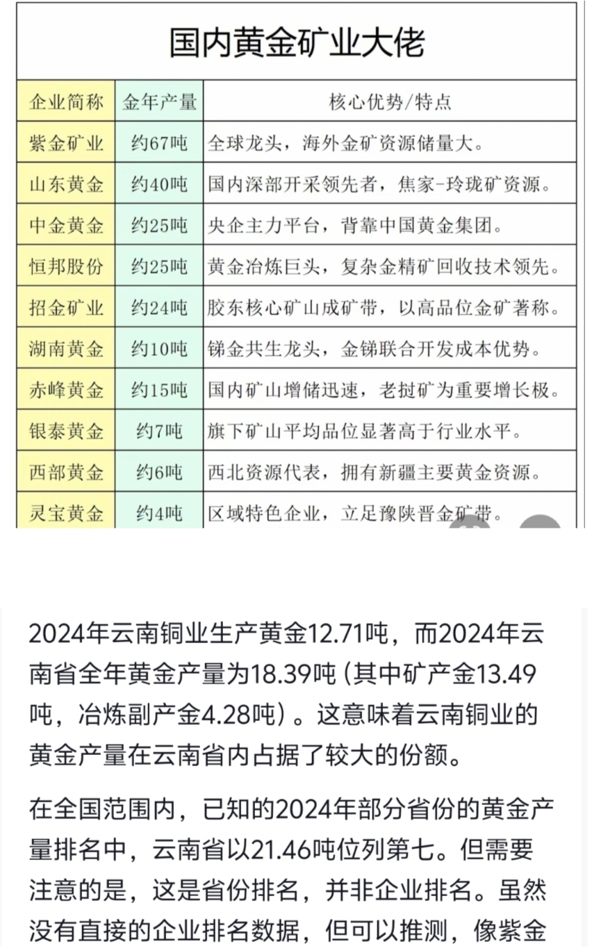 $中金黄金(SH600489)$ 云南铜业央企重组,黄金产量12.7吨,白银产量990吨,居然没有排名,被隐藏了,15年没大涨了!25年黄金16吨!