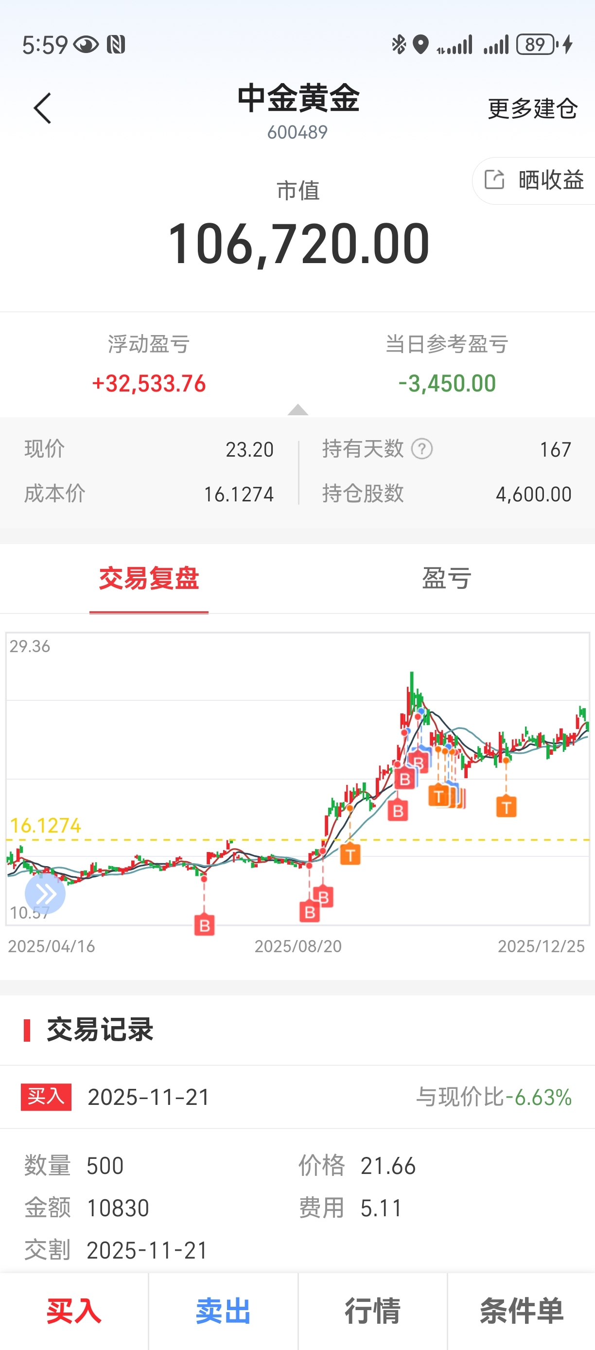 $中金黄金(SH600489)$ 浮盈加仓一把亏光