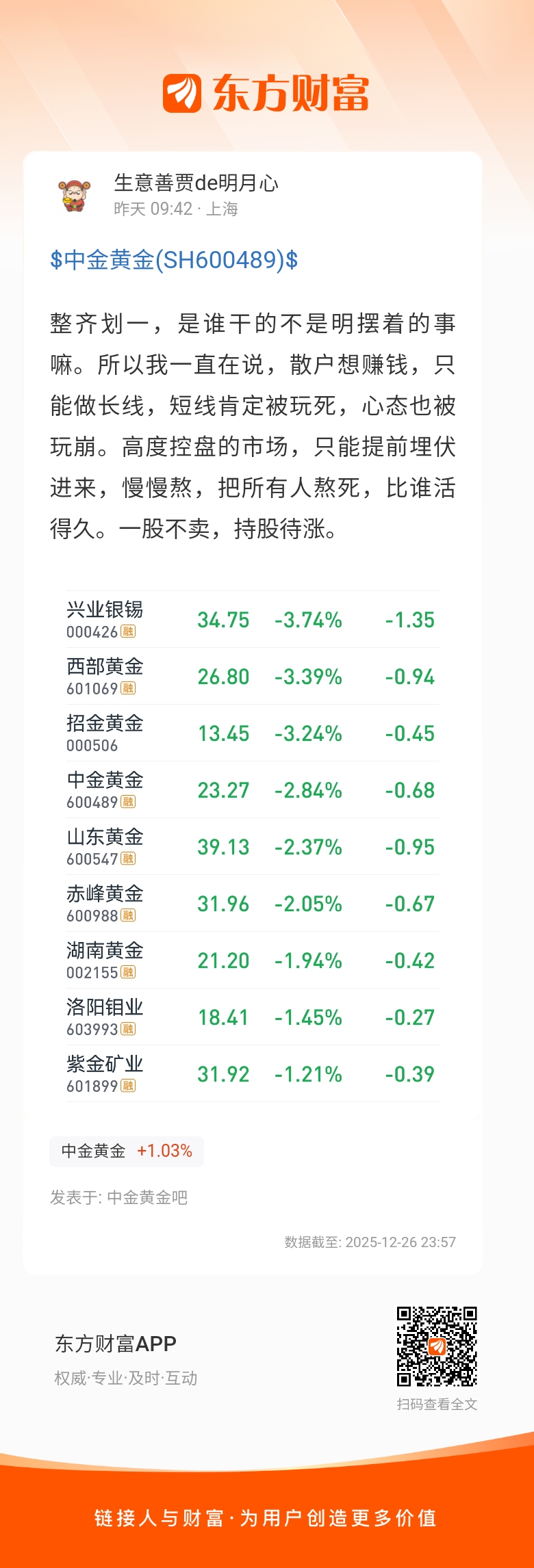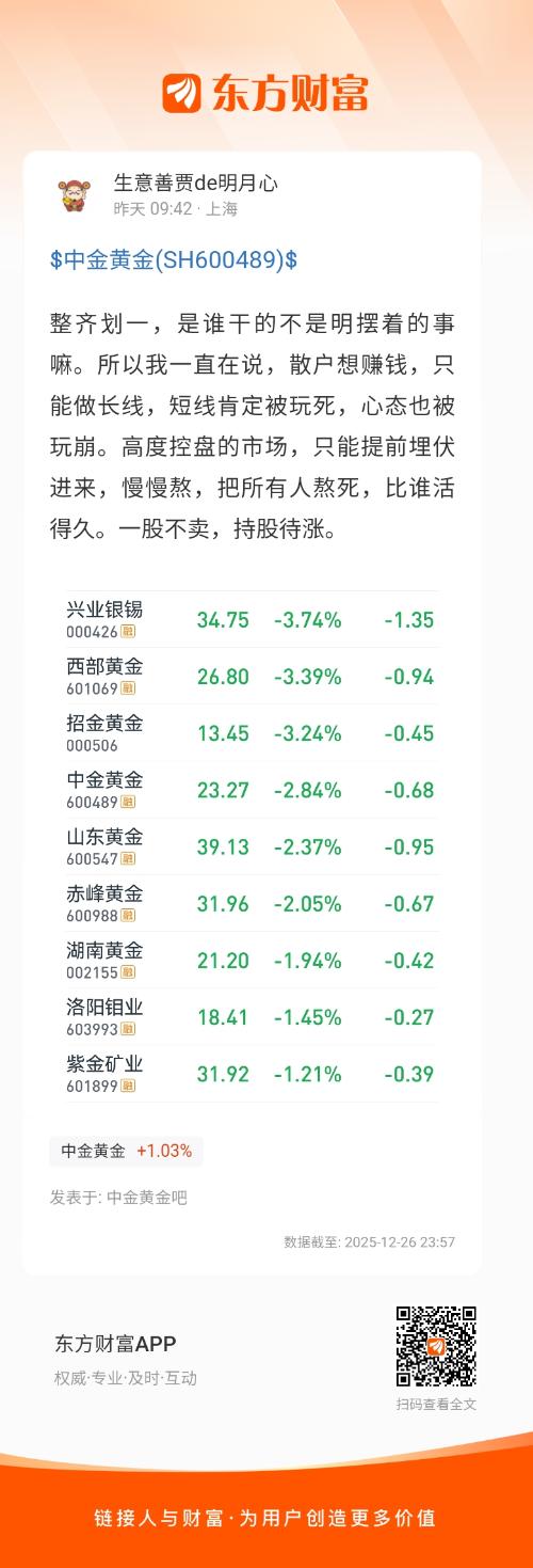 温馨提示: 1.根据《证券法》规定,禁止编造、传播虚假信息或者误导性信息,扰乱证券市场;2.用户在本社区发表的所有资料、言论等仅代表个人观点,与本网站立场无关,不对您构成任何投资建议。用户应基于自己的独立判断,自行决定证券投资并承担相应风险。《东方财富社区管理规定》