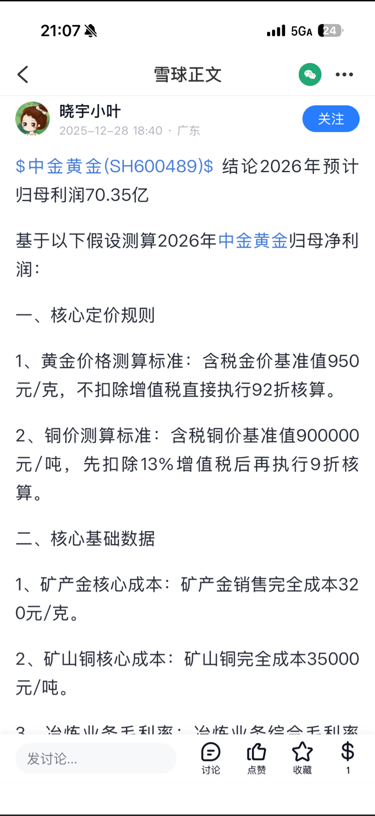 $中金黄金(SH600489)$ 我们红粉博士给出了2026年利润的精准预测,结合管理水平稀碎和套保,给10倍pe,还有百分之40的下爹空间,跟红粉大军一起4倍融券做空中土黄土,发大财