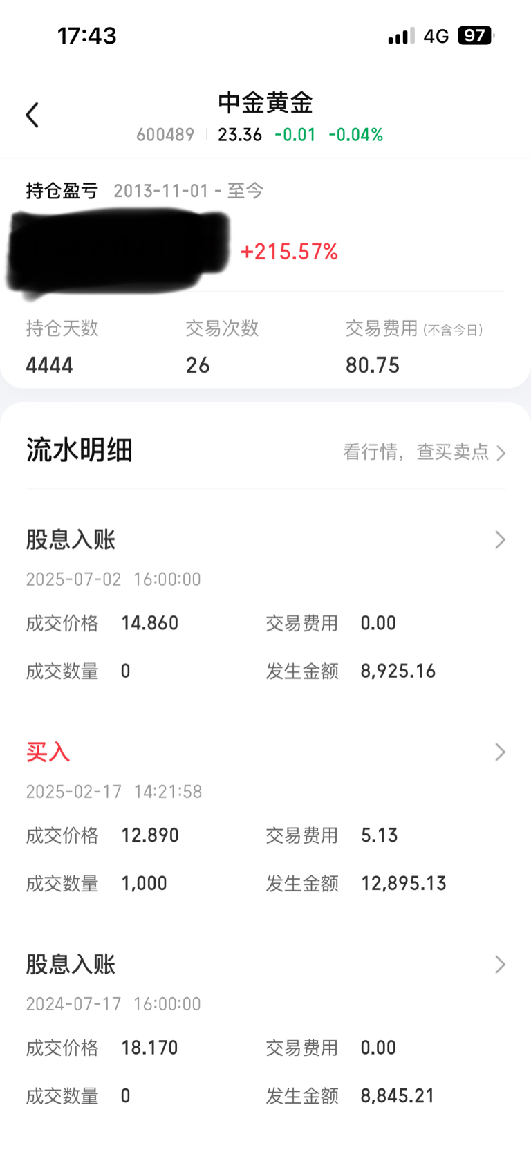 $中金黄金(SH600489)$ 今天刚好持股4444天,4是我的吉利数字