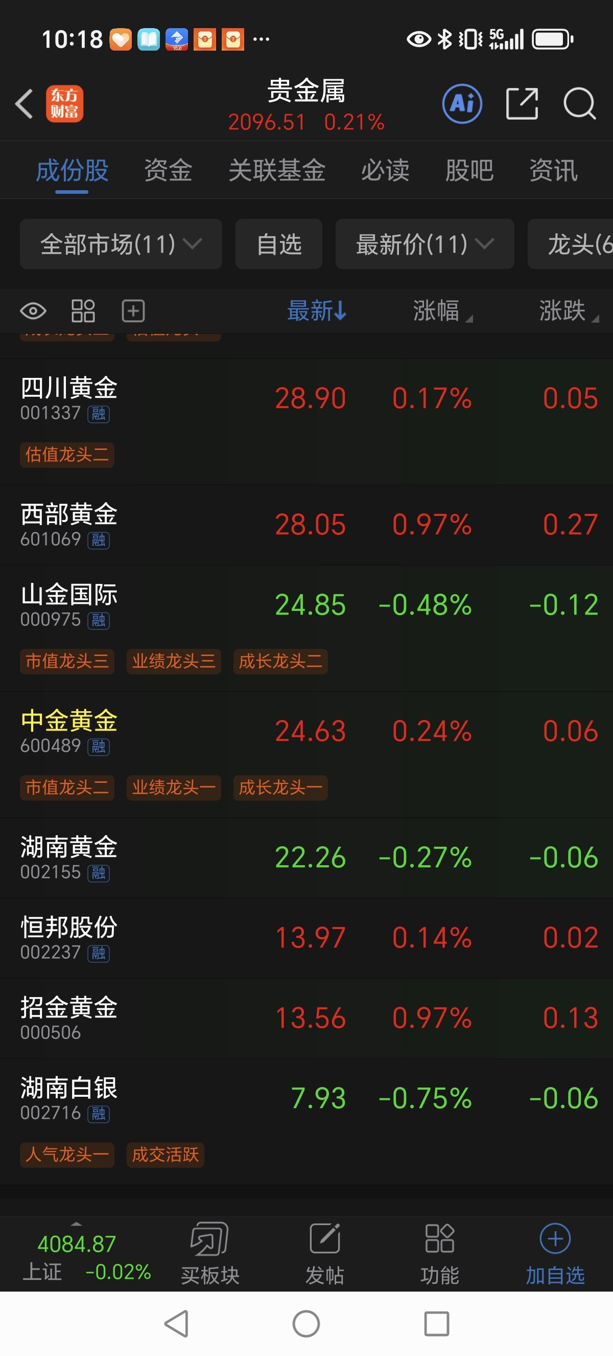 中金走的还不错的,感觉要超过山金国际了,湖金恒邦以前都在中金前面的,现在都下去了