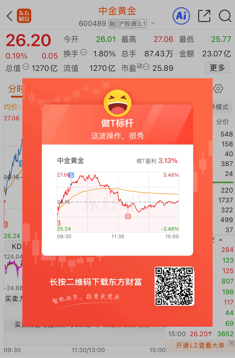 $中金黄金(SH600489)$ 全盘绿的,只有这个红