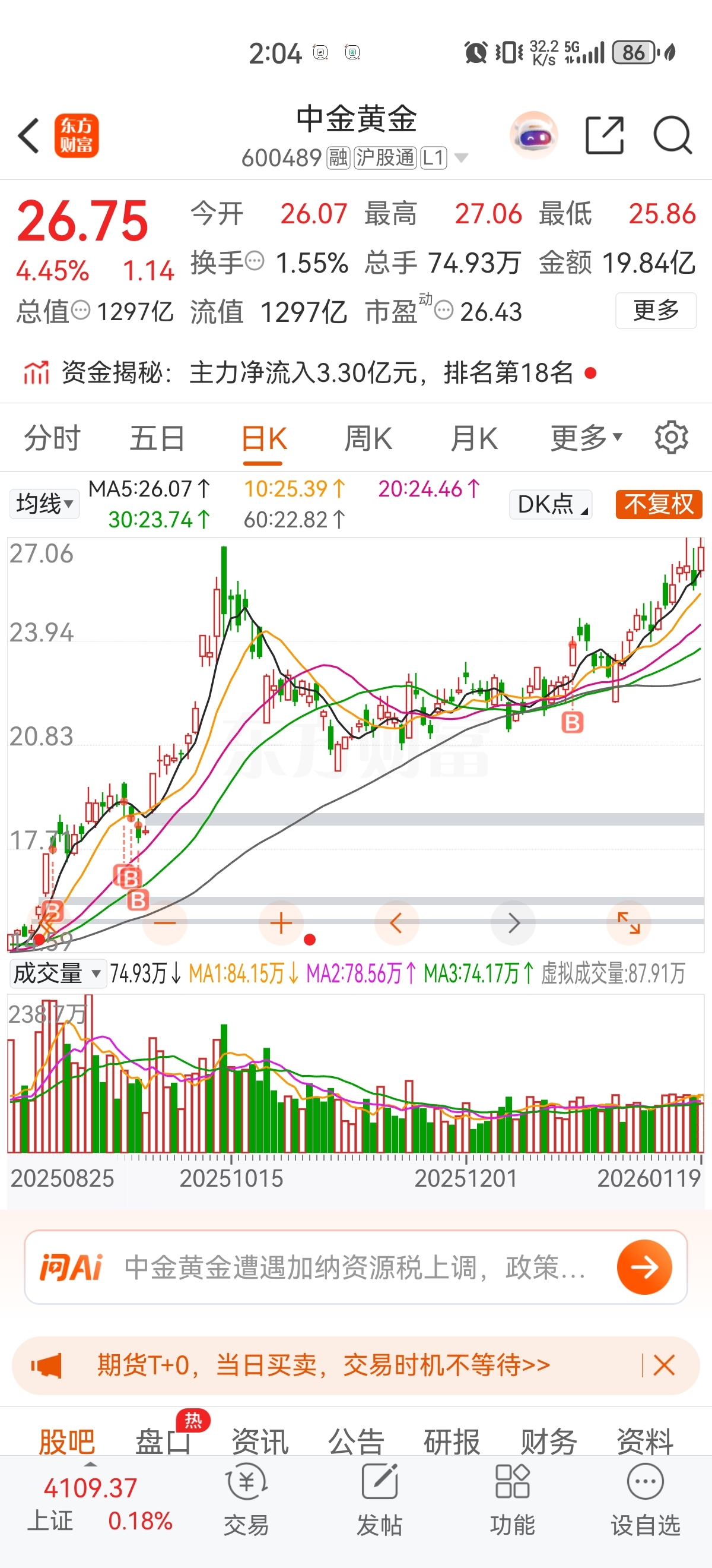 $中金黄金(SH600489)$ 看日K线图M顶了,短线快跑吧,再不跑又被套了