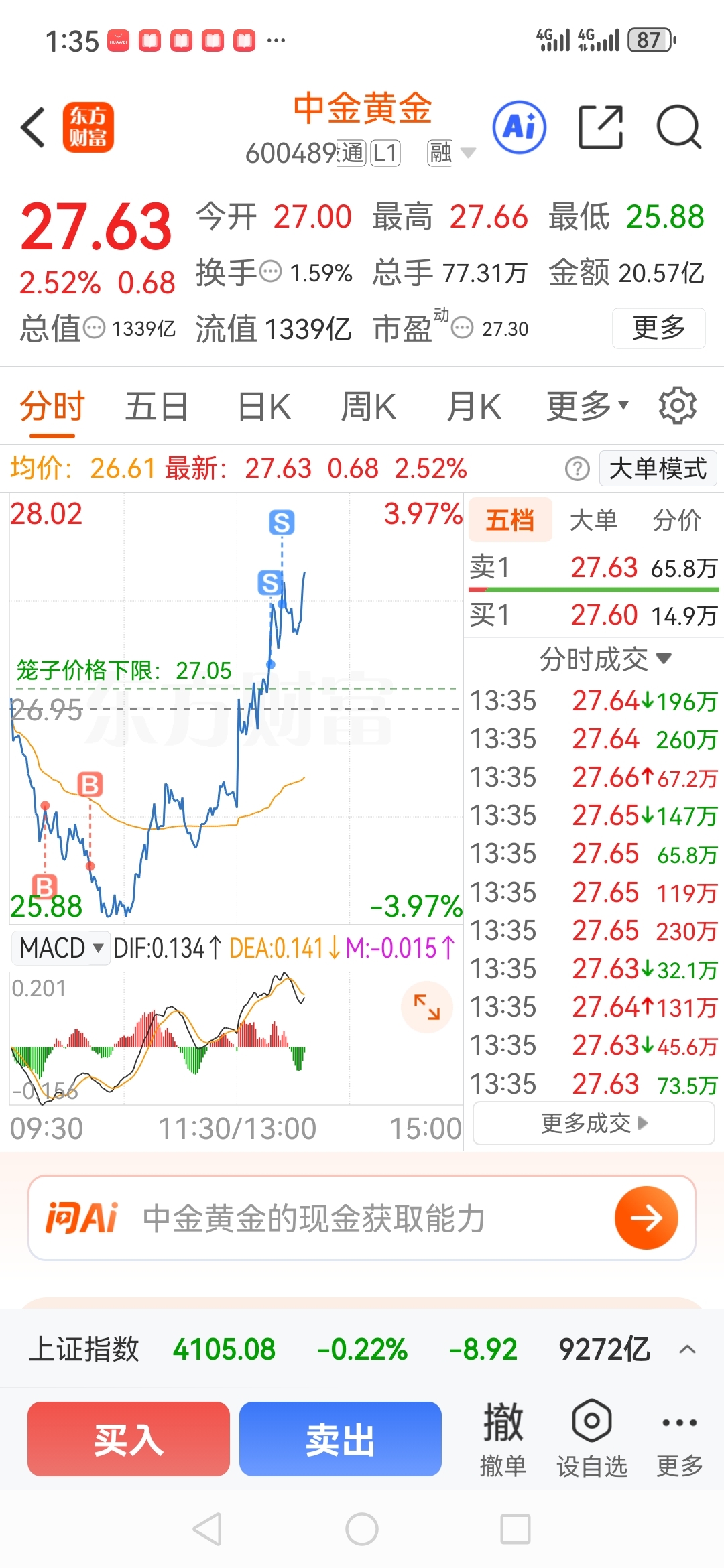 $中金黄金(SH600489)$ 涨不上去就来回做留个一半在里面,让他折腾