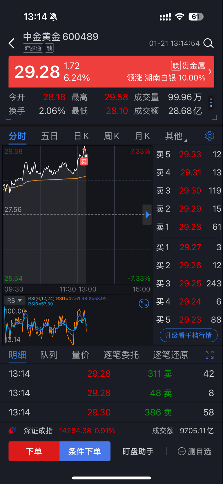 $中金黄金(SH600489)$ 观望了几天,上车了,开始跌了