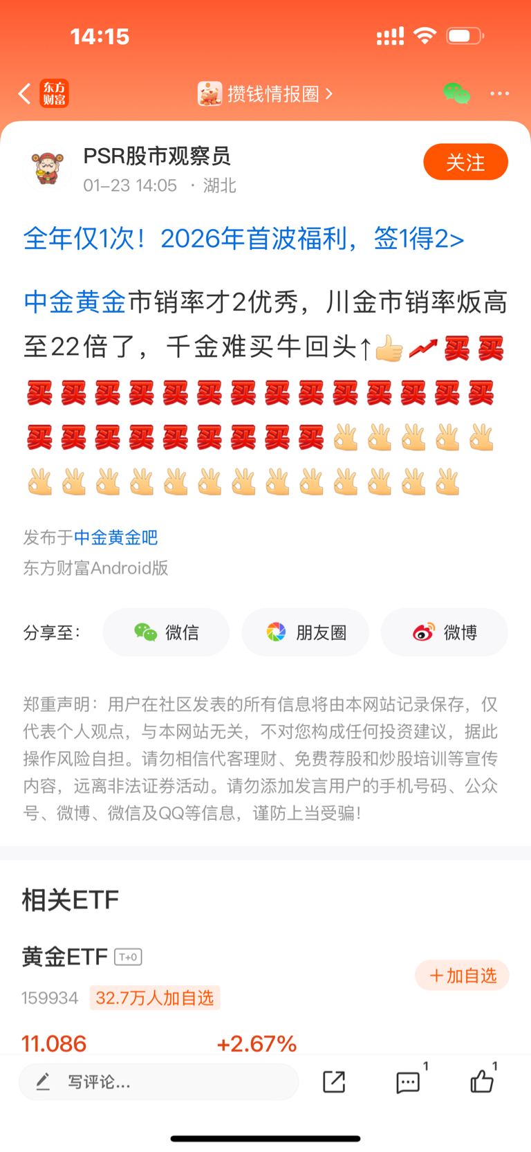 $中金黄金(SH600489)$ 你谁啊,跟个托一样,一天发几百条