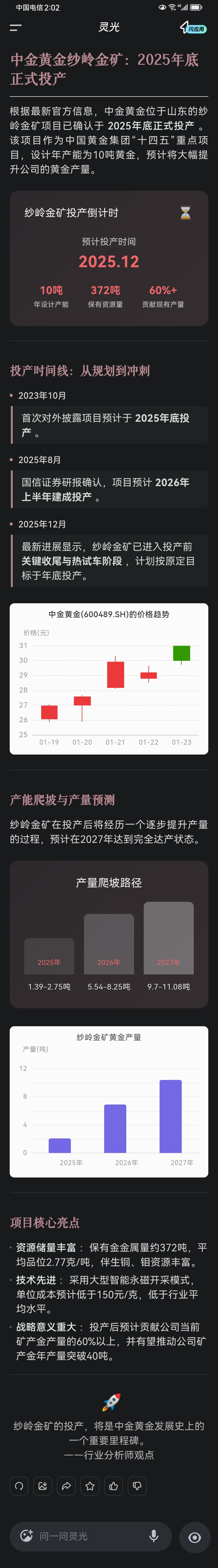$中金黄金(SH600489)$ 纱岭金矿已正式投产,预计2026年能提供矿产金增量约5~8吨。