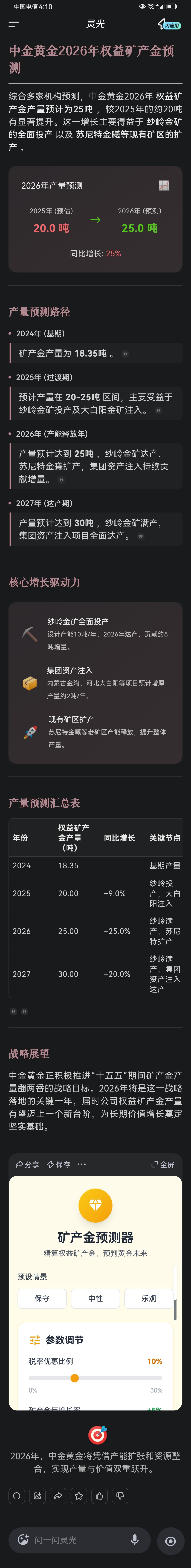 $中金黄金(SH600489)$ 中金黄金2026年权益矿产金预测