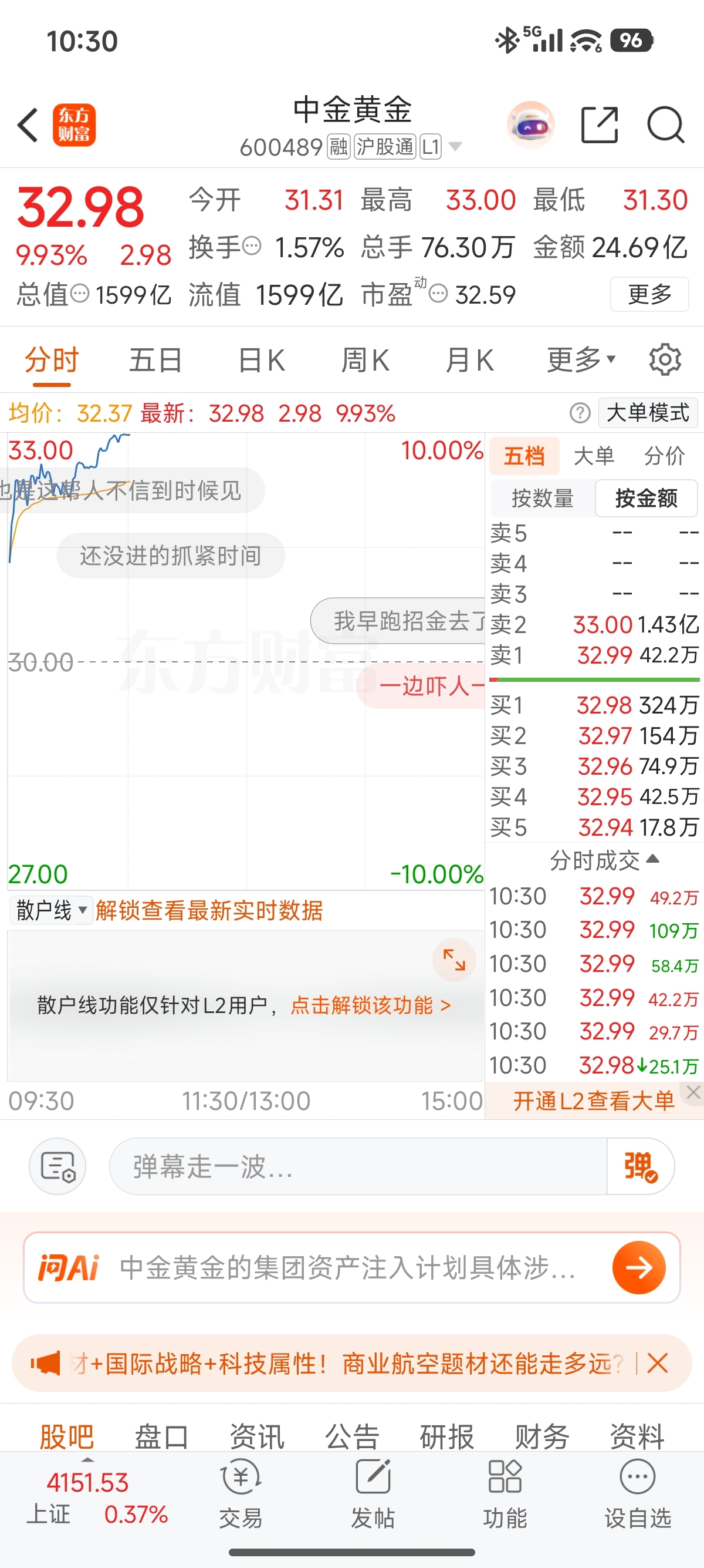 有脏东西不让涨停还好我跑招金去了
