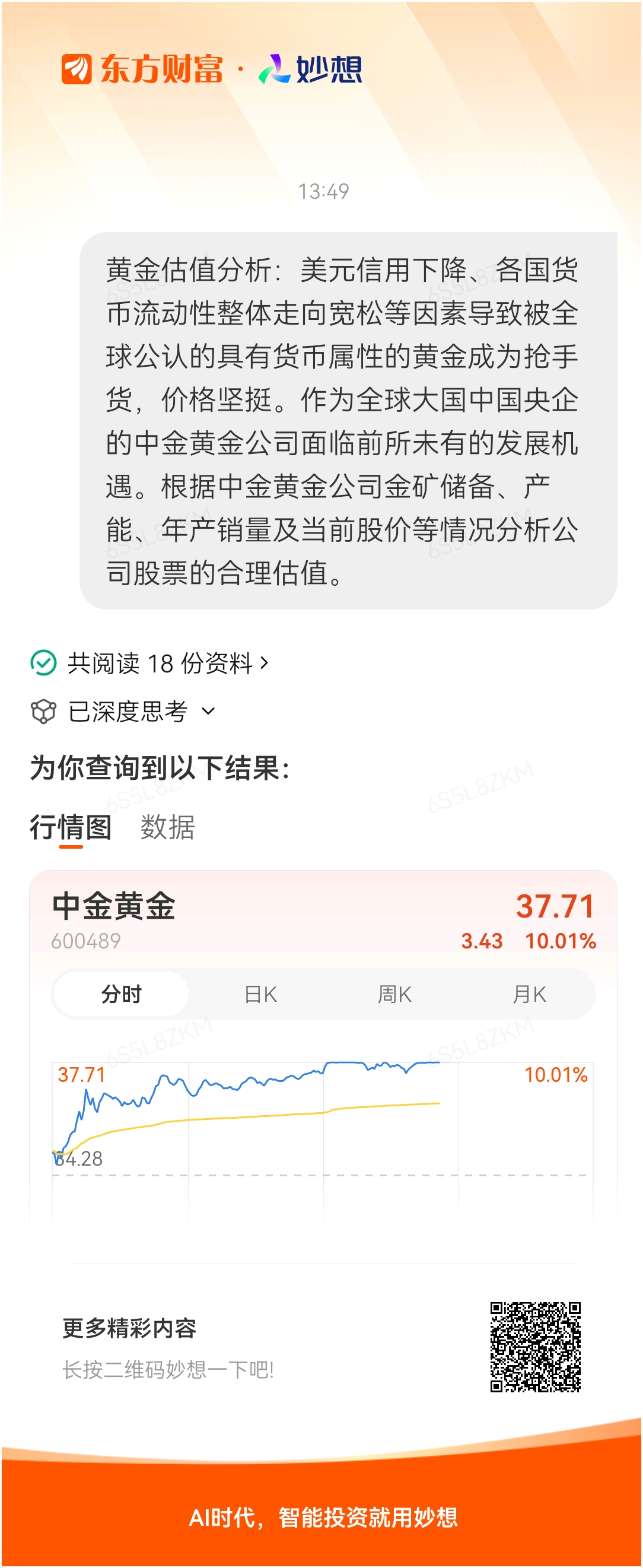 #@妙想,你怎么看?# 妙想一下:黄金估值分析:美元信用下降、各国货币流动性整体走向宽松等因素导致被全球公认的具有货币属性的黄金成为抢手货,价格坚挺。作为全球大国中国央企的中金黄金公司面临前所未有的发展机遇。根据中金黄金公司金矿储备、产能、年产销量及当前股价等情况分析公司股票的合理估值。
