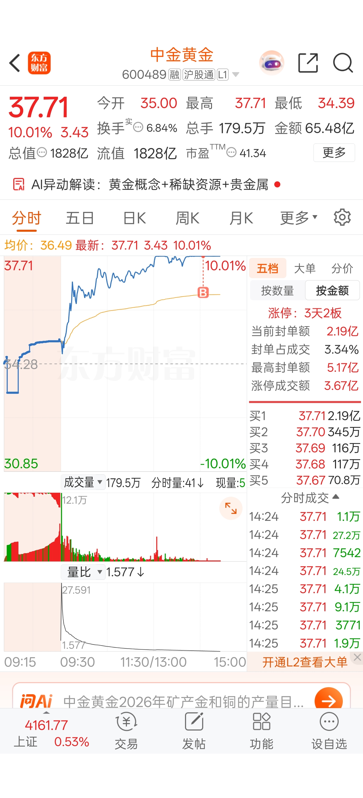 $中金黄金(SH600489)$ 涨停板买的,有没有错?