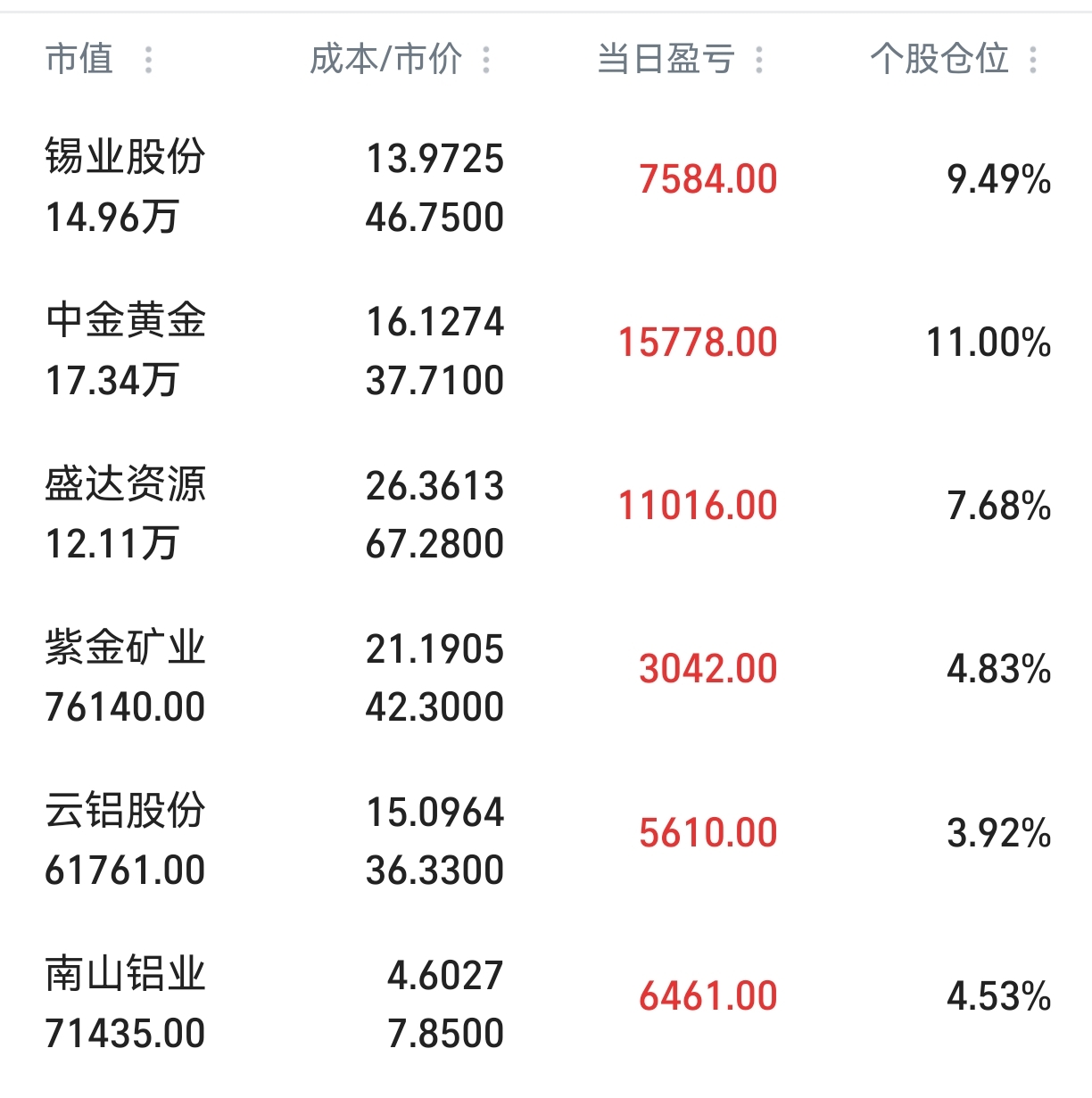 $中金黄金(SH600489)$ 硬生生给我膨胀到仓位一哥了,老大我服了