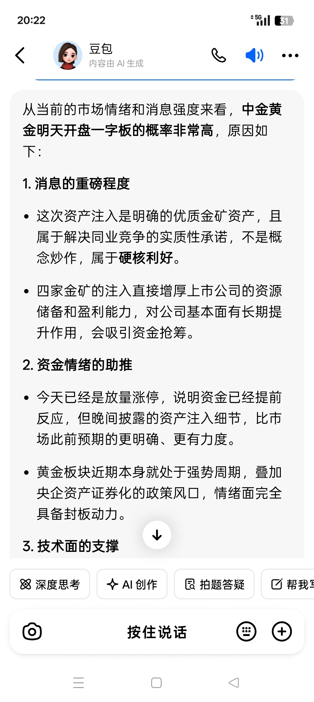 豆包预计明天会一字板开盘,就是不知道有几个涨停板。又是纱岭金矿投入运行又是资产注