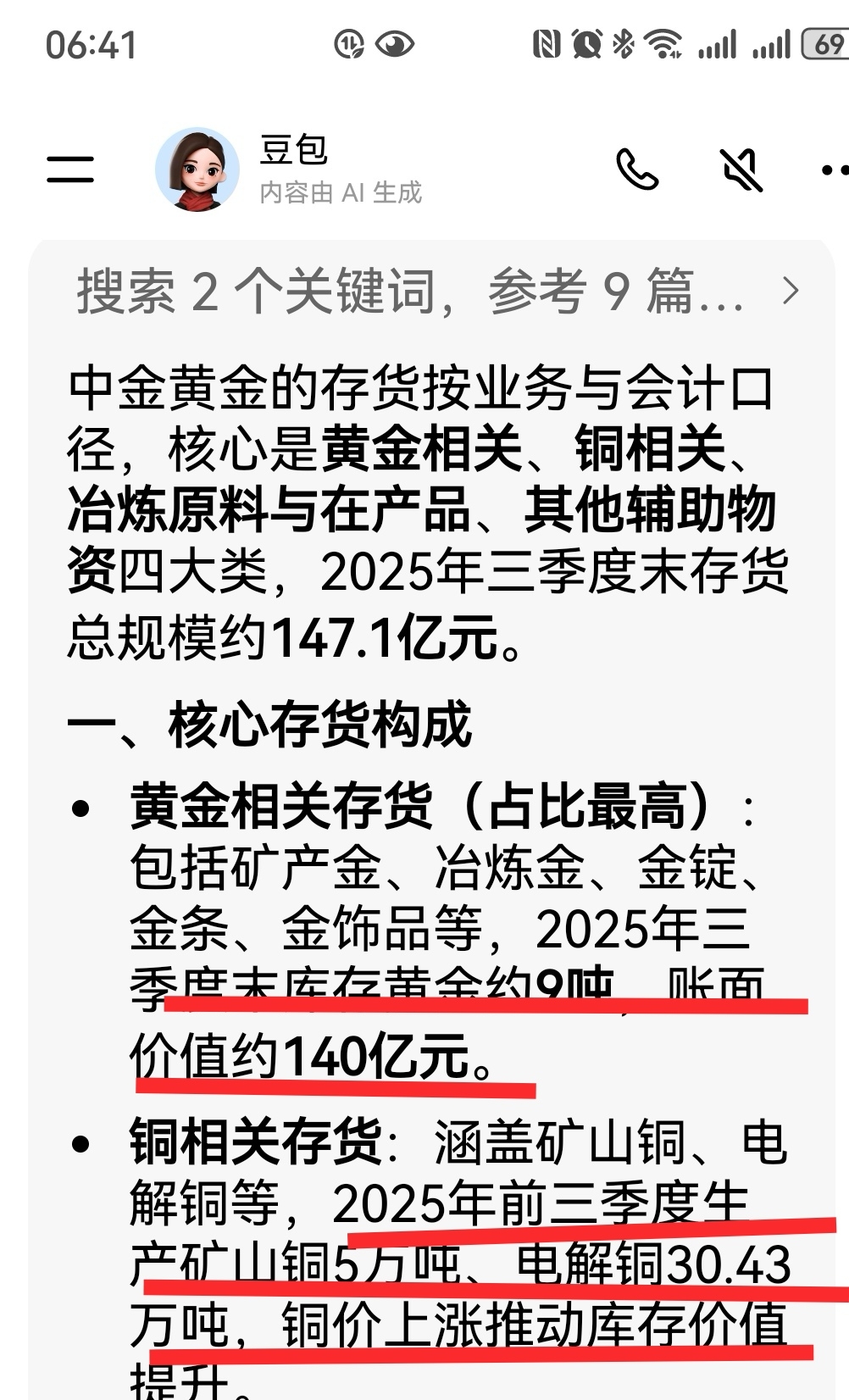 中金黄金2025三季度末库存黄金9吨140亿元,现在每克黄金升值200元,每吨升