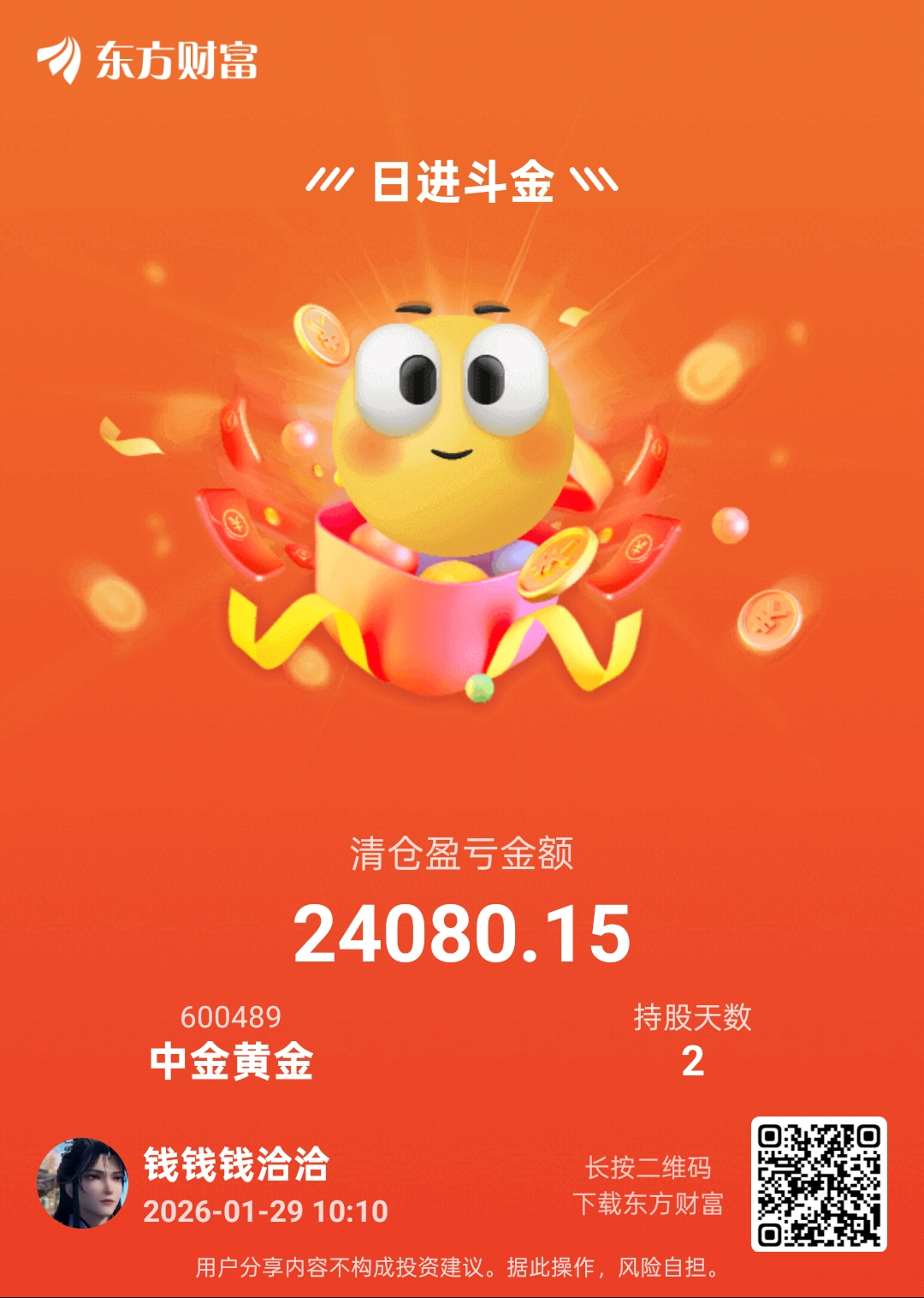 $中金黄金(SH600489)$ 我超你的,一会没看就下来了,早知道不格局了