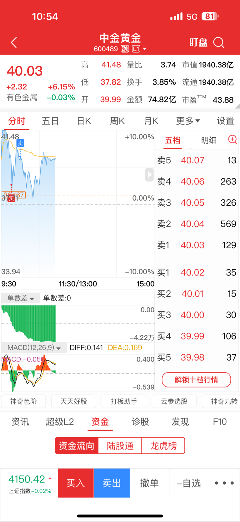 $中金黄金(SH600489)$ 满上了,冲啊