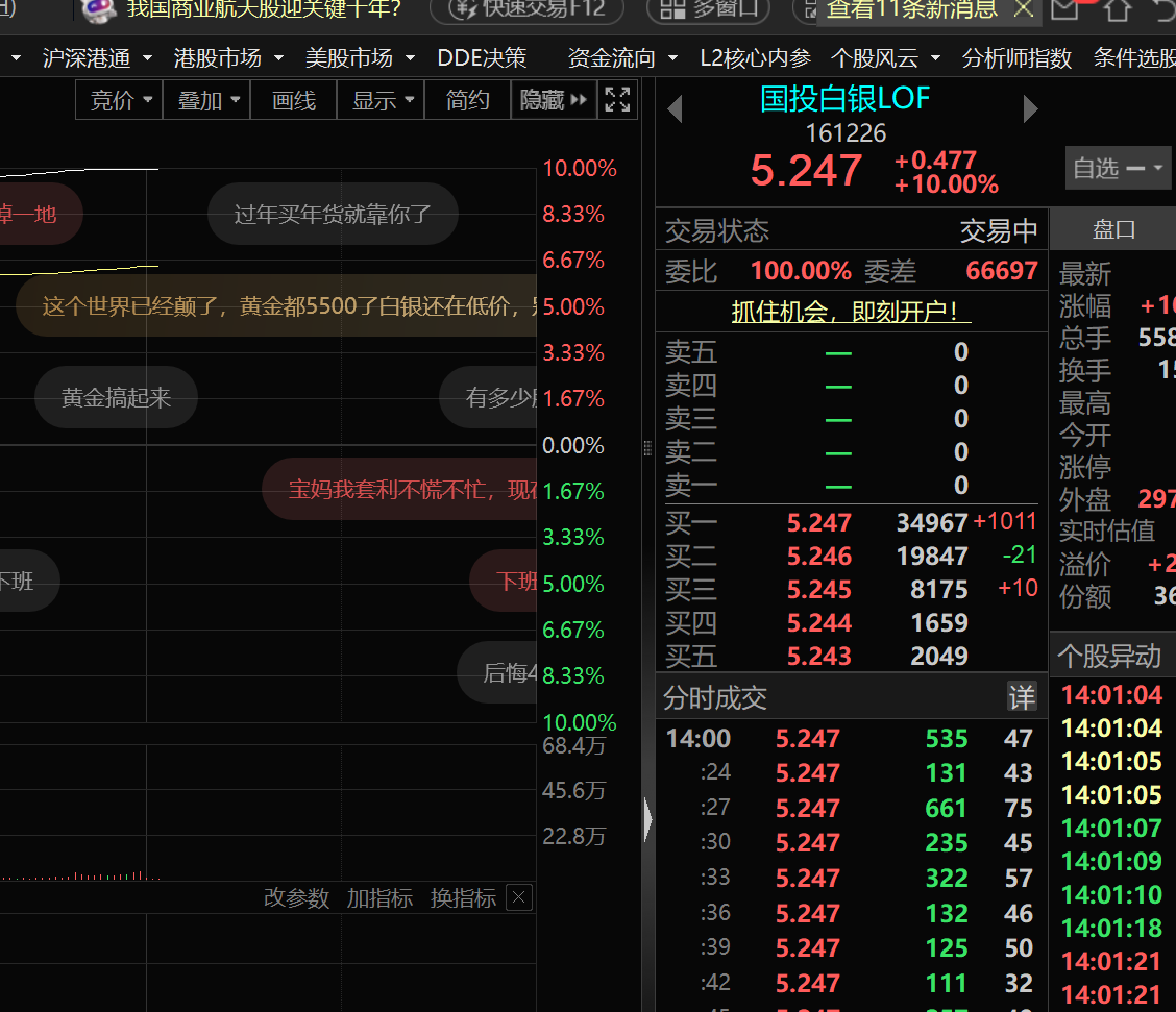 国投白银LOF午后触及涨停