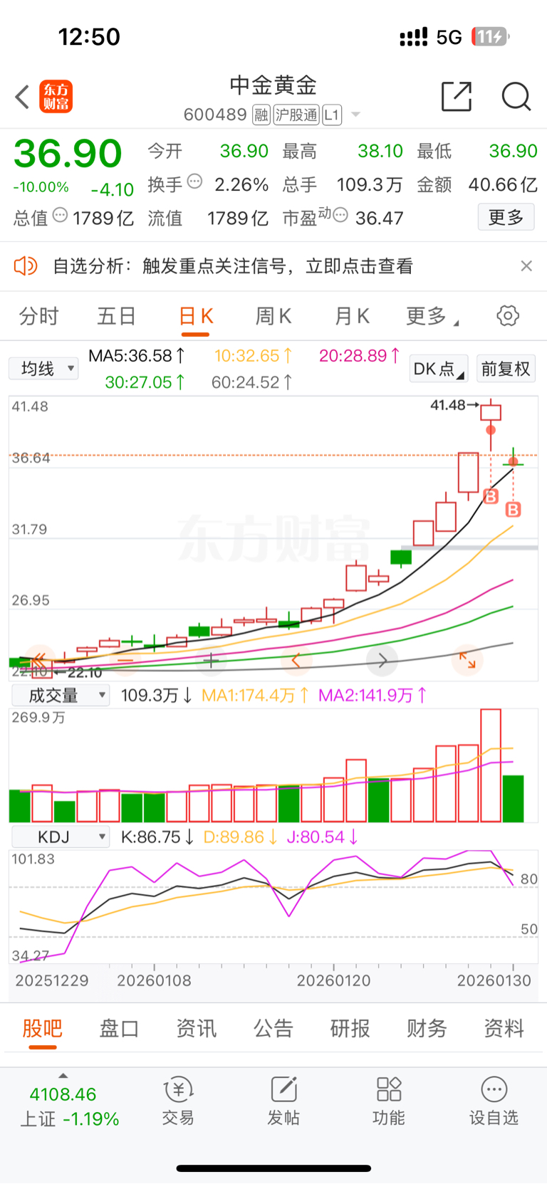 $中金黄金(SH600489)$ 我一买就跌?